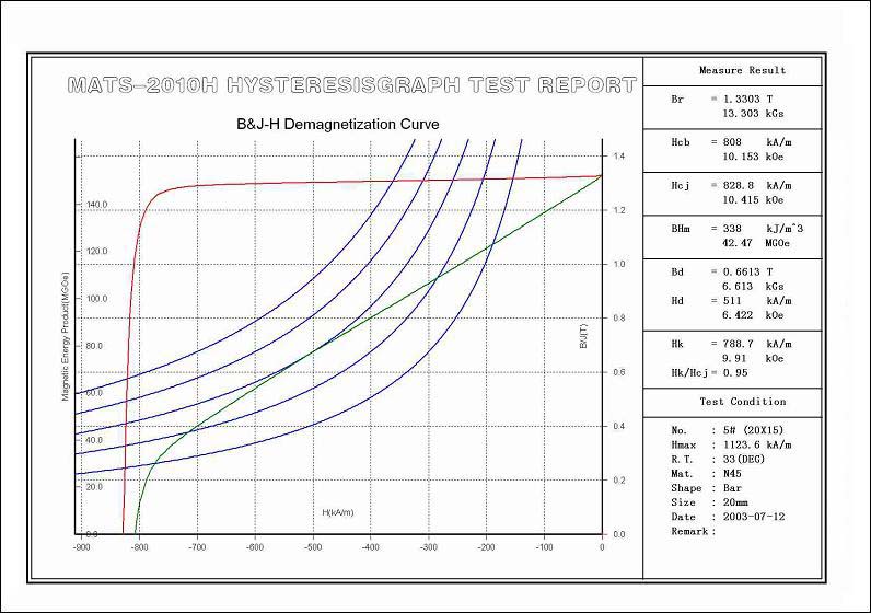 Automatic measurement on hysteresis loop and demagnetization curve of permanent-magnet material, accurate measurement on magnetic characteristic parameters such as remanence Br, coercive force HcB, intrinsic coercive force HcJ and maximum magnetic energy product (BH)max.